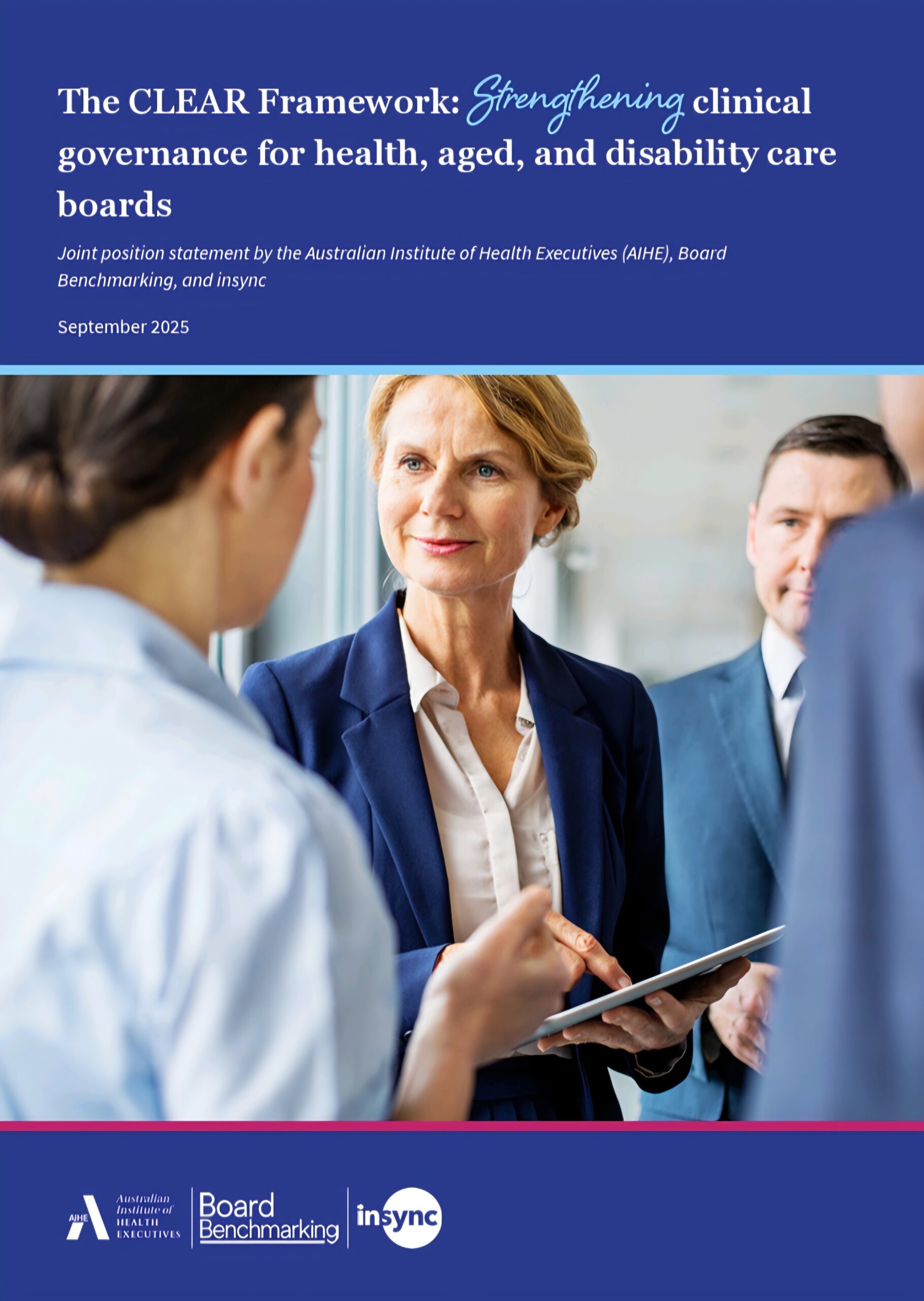 The CLEAR Framework: Strengthening Clinical Governance for Health, Aged and Disability Care Boards is a jointly developed new framework to assess the clinical governance maturity of healthcare, aged care & disability care boards.
